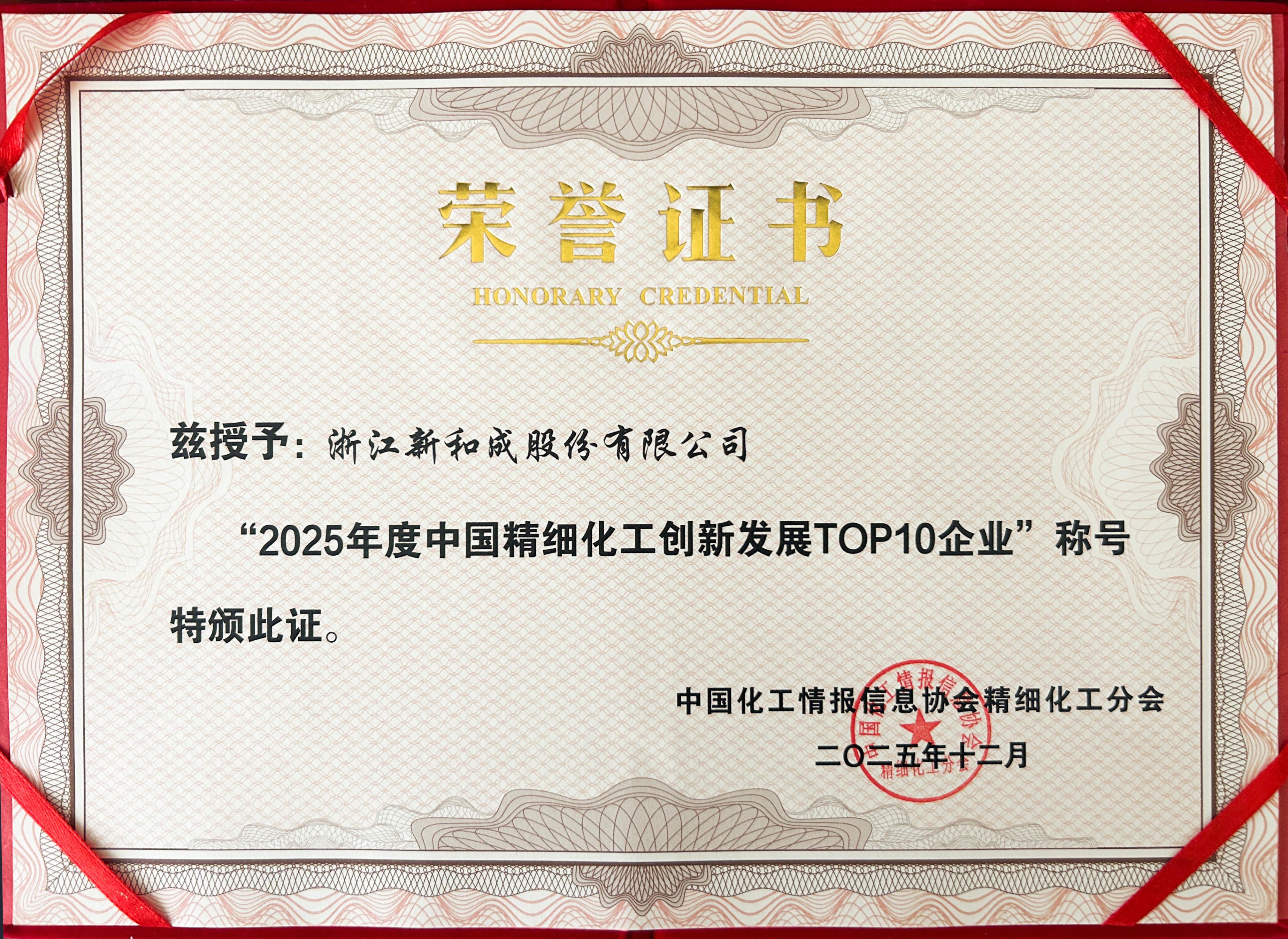 NHU claimed the top position in both the 2025 China Top 100 Fine Chemical Companies and the 2025 China Top 10 Fine Chemical Innovation and Development Companies. This double recognition affirms NHU’s overall industry leadership and highlights our strengths in management, innovation, and green development.